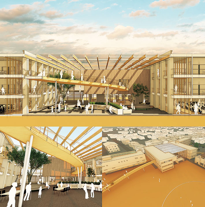 4人1組のグループをつくり、役割を決め大規模な商業施設や共同住宅などを設計します。お互いに協力し、信頼関係を深め建物を造る過程を学びます。