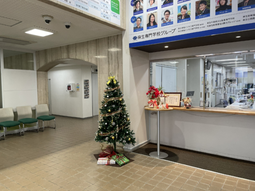 みなさん、こんにちは!最近はぐっと寒くなってきましたね。冬といえばやっぱりクリスマス!街中でもイルミネーションや飾りつけが増えてきて、ワクワクする季節になってきました。麻生でも、校舎の中をクリスマス仕様に飾りつけています。 季節のイベントを取り入れることで、「学校に来るのが楽しみになる」ような空間づくりを大切にしています。ぜひ一度、オープンキャンパスに来て、実際の校舎の雰囲気や学生たちの様子を感じてみてください。