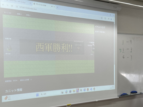 敵の城を攻撃して勝敗を競います。(このシステムは麻生の教員が制作しました)
