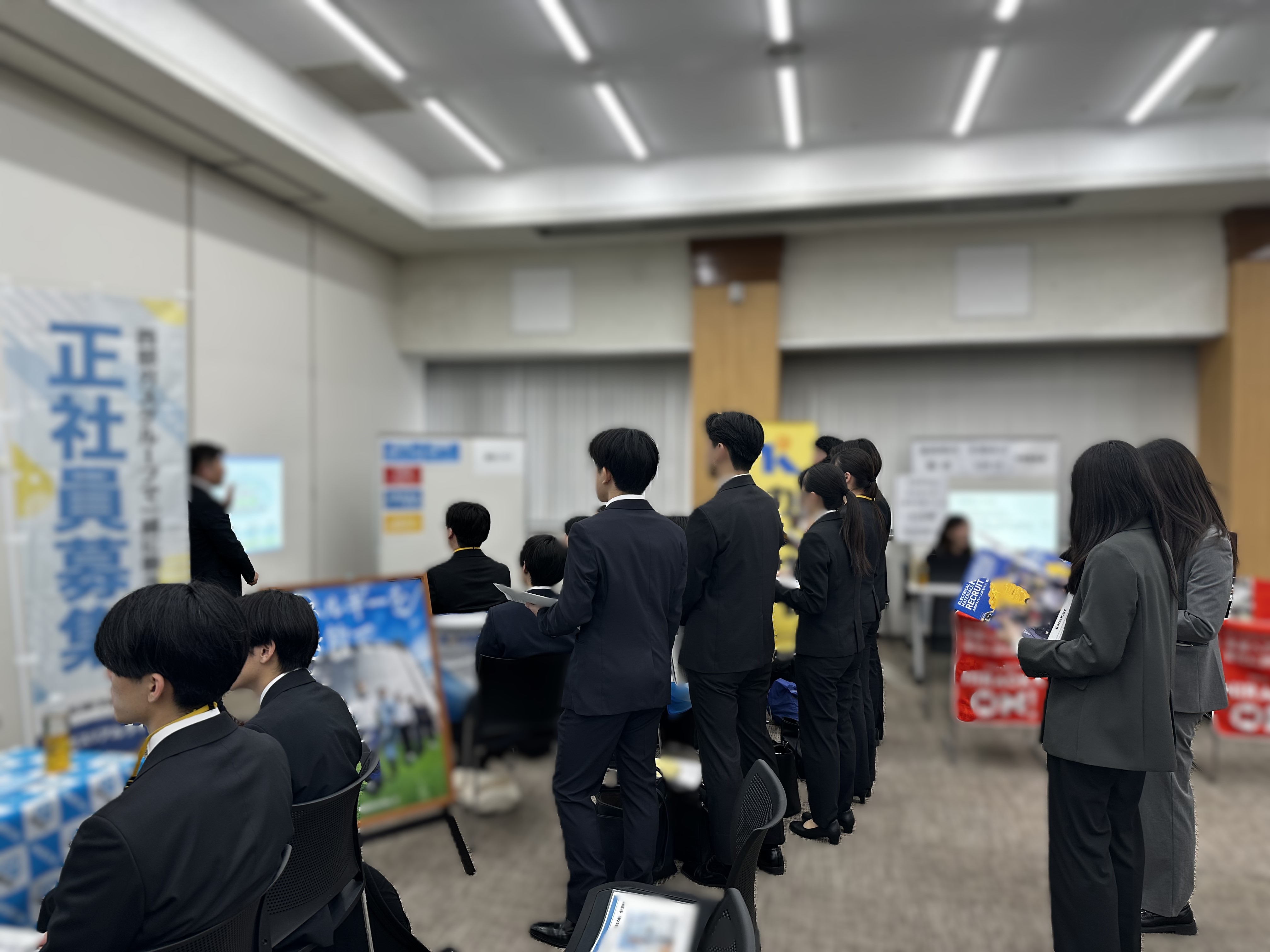 ITエンジニア・営業職・事務職など幅広い職種を募集する企業15社をお招きし、合同企業説明会を実施しました。さまざまな業界で活躍されている企業の方々から直接お話を伺える貴重な機会となり、会場は終始活気にあふれていました。