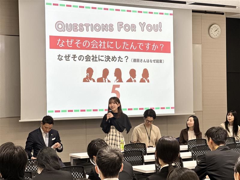 パネルディスカッションでは、学生時代から現在に至るまでのキャリア紹介、会社を選んだ理由や決め手、就職活動で直面した壁、「NGなし」で語られるリアルな体験談など普段はなかなか聞けない本音に、学生たちも真剣に耳を傾けていました。