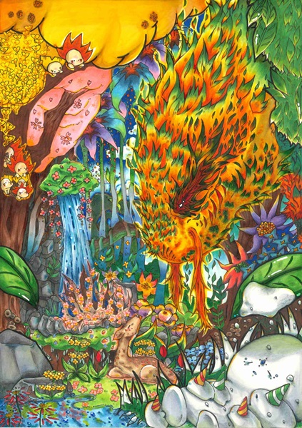 ・描き込みの密度が高くて、すごいです!色のセンスにも個性が光っています!