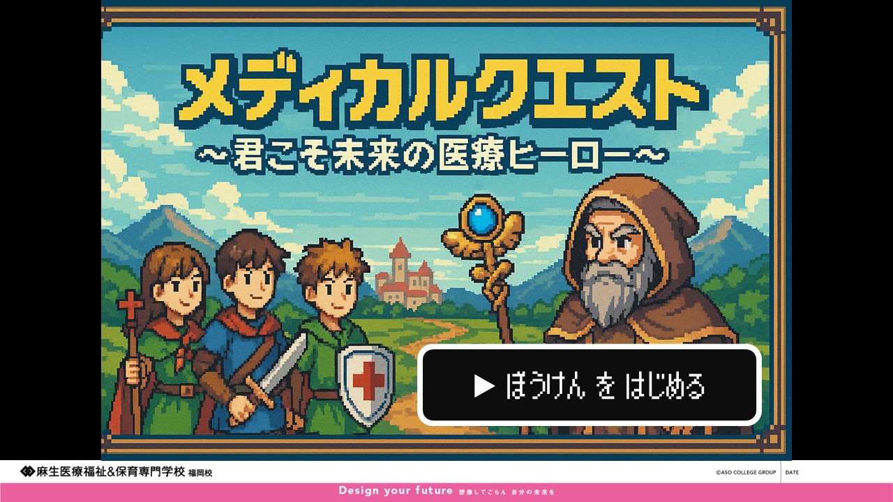 もし、あなたの学校で麻生専門学校グループの職業理解の授業があったら、ぜひ「医療事務系」の授業を選んで、このクエストの扉を開いてみてください!
