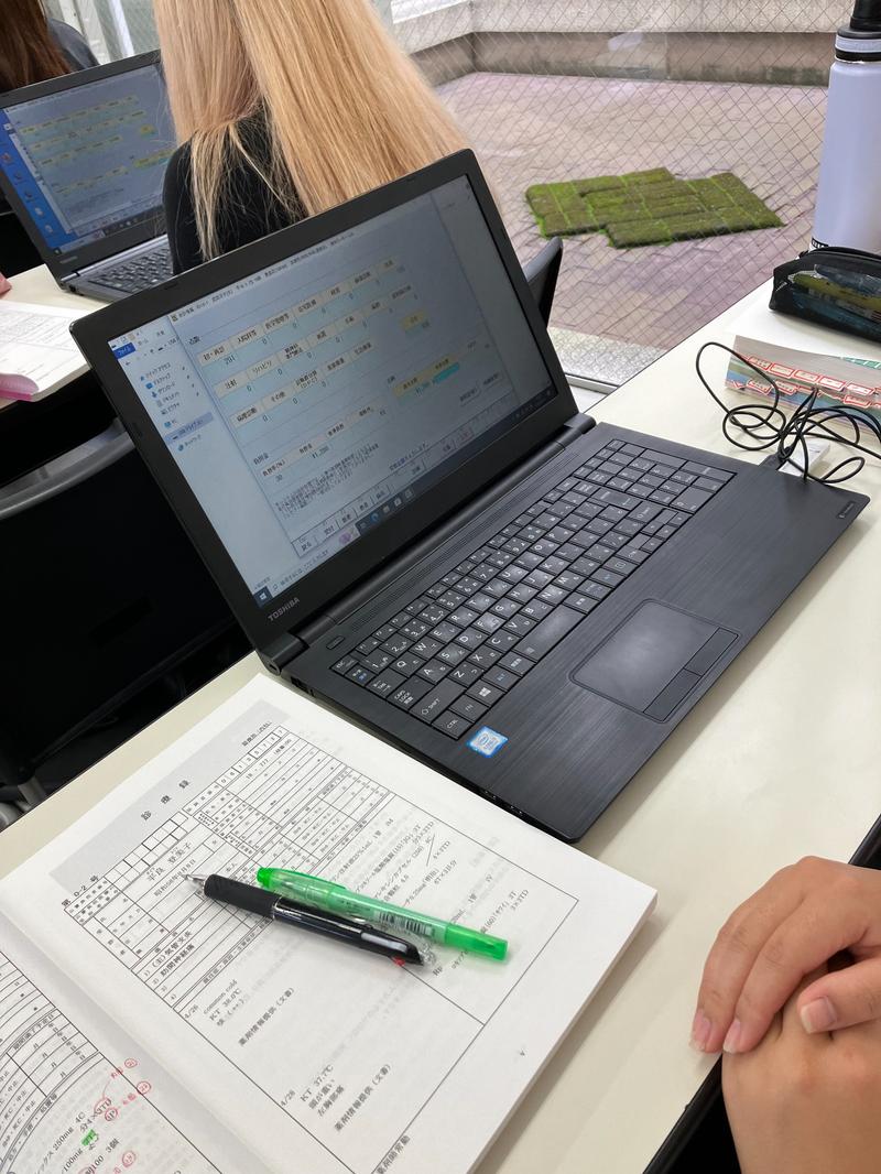 今日は、医療秘書・事務科の1年生が初めて「メディカルオペレーター」の授業に挑戦しました!