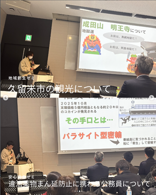 久留米市の観光について、魅力や課題を自分たちの足で調べており、とても分かりやすい内容でした。